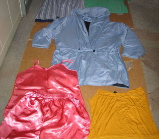 Vêtements pour homme, pour femme, pour enfants, présentés en vrac et vendu au poids compte tenu du grand nombre. (chemises, chemisettes, pulls, gilets, polos, jupes, pantalons, éch