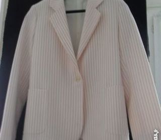 Ensemble veste et pantalon blanc, rayure rouge lavable à la machine. Possible vente separement