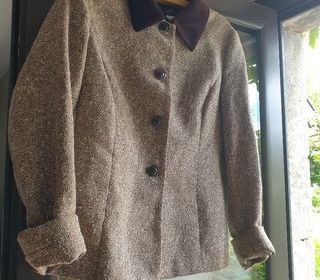 Veste chinée marron cintrée, col et boutons en velours, vintage Envoi possible, pour consulter toutes les offres, tapez Régine - Aix-les-Bains