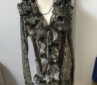 Chemise veste d'été, toute volantée, col jusqu' au bas de la chemise, manches également volant au bas, fermeture par boutons et lien en haut 100% polyester achat coup de coeur e