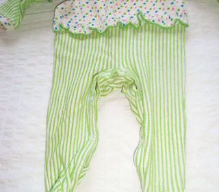 Pyjama grenouillére fantaisie destinée à une fillette couleur blanc et vert amande taille 1 an très bon état fermeture par pressions entre les jambes et au dos Nous contacte