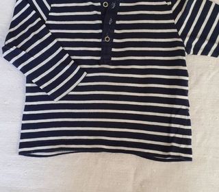 Vends un tee-shirt bleu marine rayé blanc marque Kiabi pour garçon 12 mois (73-76 cm)