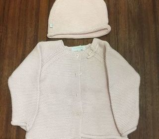 Vends Ensemble enfant fille gilet + bonnet " Cadet rousselle " couleur rose - Taille 1 an - Très bon état - Prix 6 euros