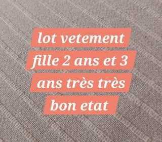 Gros lot de vetement fille du 2 ans du 3 ans et un peu de 4 ans , j'ai encore aussi du 12 mois et 18 mois a venir voir sur place et vous pourrez choisir votre lot de vetement .