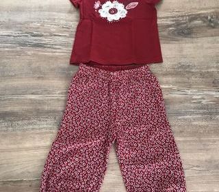 Vends Ensemble pantalon + tee shirt enfant fille " orchestra baby girl " couleur rouge - Taille 18 mois - Très bon état - Prix 6 euros