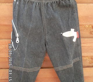 Pantalon bleu marine Basics Orchestra, taille 23 mois / 86 cm. Juste un léger accroc au genou gauche (voir photo). Légèrement usé aux genoux. Taille réglable, très pratique p