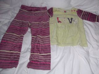 Pyjama fille vert et pantalon rayé rose et vert, taille 2 ans, marque Orchestra prix : 1,20€ envoi possible