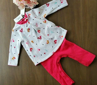 combinaison marque Catimini 6 mois (68cm) couleur gris très, très clair motif biches et pantalon fushia haut intérieur molletonné ? pressions dans le dos et pantalon Article