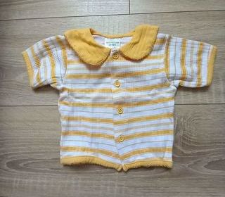 TEE SHIRT MANCHES COURTES 3 MOIS EN TRES BON ETAT // RAYE JAUNE ET BLANC // COTON // FERMETURE BOUTON DEVANT // AVEC COL