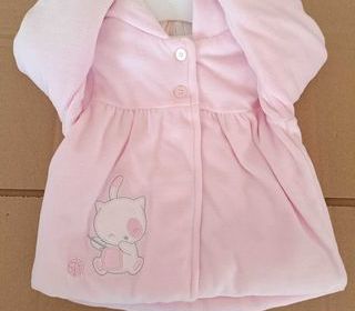 Joli dors bien en polaire bleu ciel et rose, orné d'un motif de petit chat avec son ours, fermé par glissière. Taille 3 mois. Prix : 8.00 euros + frais d'envoi par Mondial Relay