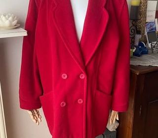 Doudoune zippée de coloris rouge avec fourrure sur le col. Etat neuf.