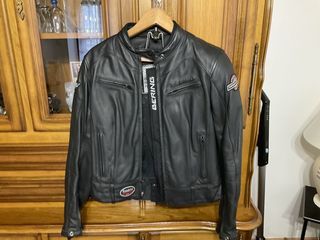 Blouson moto cuir femme taille M. Avec protèges coudes Très bon état. Porte 2 fois.