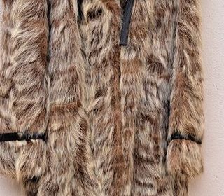 Très beau manteau en cuir rtourné et fourrure de couleur marron clair