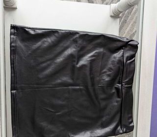 Mini jupe longueur 36cm de longueur mais une fois portée, ça se réduit grandement (autres photos à disposition). A tester