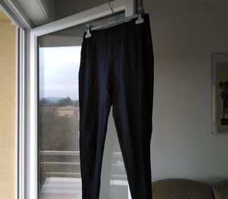 Vends pantalon bleu en élasthane, viscose et polyamide, taille : 46/48, en très bon état