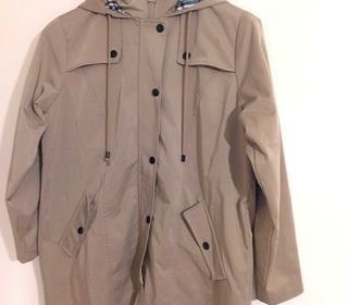 LA BOUTIQUE DES CHAPEAUX MODE ET ACCESSOIRES à€ GAP VESTE coupe-vent style trench imperméable beige, neuf sans étiquette. Taille ajustable de l'intérieur, la capuche est fixe.