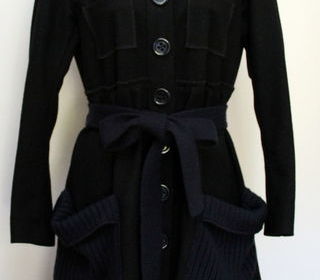 Manteau noir et marine SONIA RYKIEL T.M soit T.38/40 fr laie H 90 cm Aiss 48 cm 4 poches ext. fermeture boutons et ceinture col, 2 poches, ceinture tricot laine marine TBE