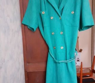 Vends une robe droite manches courtes, non doublée, classique avec ceinture, petites fentes devant et derrière, épaulettes fines, marque Lautrec, fabriquée en France. Longueur s