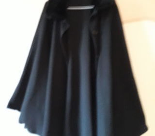jamais portée ; Tre ès élégante et chaude cape noire avec col en fausse fourrure à porter seule ou sur un manteau Très agréable pour s'emmitoufler / A règler en espèces au domicil