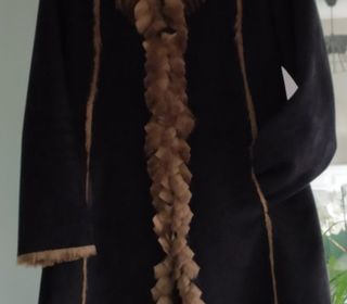 Manteau en Jean's bleu doublure matelassée maron col fourrure 100% polyester longueur 100 cm