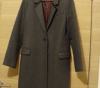 Gris anthracite et doublure lie de vin T. 40/42 Laine et doublure 100% polyester Fermeture 1 bouton, 2 poches à rabats, 1 vente dos. Très bon état. 80 €. Uniquement en espèces