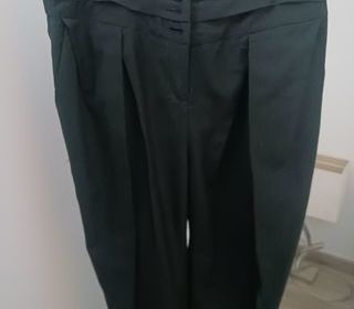 ENSEMBLE NOIR PANTALON : 3 PLIS CEINTURE , PLI CREUX DEVANT, belle finition bas. VESTE à godets dos. B YOUNG