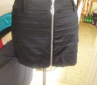 JUPE plissée chocolat avec ceinture doré brillante NEUVE LA CITY étiquettée, Taille 38 logo de la marque LA CITY en acier doré jupe toute doublée Volants all over Fermeture zi