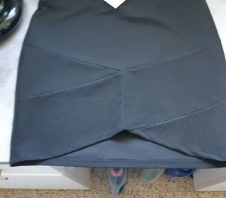 VEND jupe noire, croisée sur le devant, NEUVE, étiquettée CAMAIEU, TAILLE XL taille élastisée longueur d ela juoe (mesure prise du dos de la jupe) 47.5 cm 89% polyester 11% ela