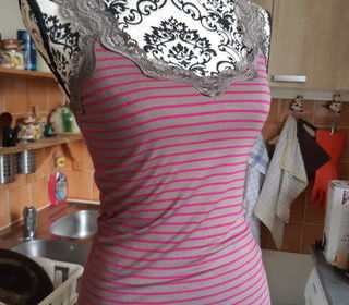 VEND top a rayures fushia/taupe, dentelles 3 SUISSES COLLECTION ,NEUF Taille 34/36 larges bretelles en dentelles base du top en dentelles 95% viscose 5% elasthanne possibilité