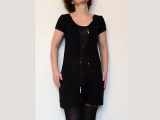Tunique/ Robe Noir à Pastilles Noires et Manches Courtes- Taille 1- Loona * Tunique/ robe noire avec sa bande de pastilles noires de 7cm de large cousue verticalement au milieu