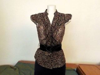 Top/ Chemise Multicolore Semi Transparente à Manches Courtes- Taille 36- Mim * Top/ chemise cintrée semi transparente beige/noir/rouge avec 3 volants autour de l'encolure en V, 2