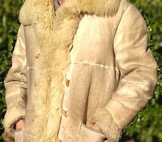 VESTE en PEAU ENTIERE de MOUTON, avec sa FOURRURE Origine Afghanistan, de 1970. Mode hippie d'époque, vintage, collector Lourde et chaude ! Fermeture par crochets et/ou pattes