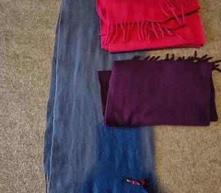 Particulier vend un lot de 3 écharpes de la marque Mahogany en 100 % cachemire. Leur dimension est 150 cm x 26 cm.