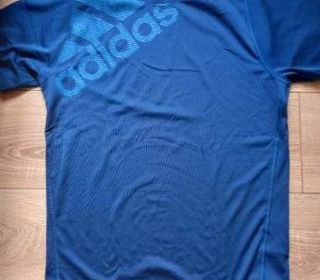 TEE SHIRT ADIDAS T S EN TRES BON ETAT // BLEU CANARD // POLYESTER // MANCHES COURTES COL ROND // longueur milieu dos 70 cm largeur poitrine à plat 48 cm