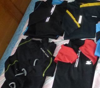 *MAILLOT MIZUNO rouge/noir - taille XL - manches longues - 1 poche zippée arrière - fermeture devant *MAILLOT RAID LIGHT noir/jaune - taille XL - manches longues avec passe pouce