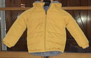 Manteau okaidi très bon état fille 6 ans. couleur moutarde réversible gris.