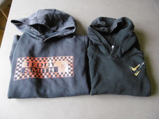 Vds un lot de 2 sweats noirs à capuche: - un sweat noir à capuche TEDDY SMITH XS/14 ans - un sweat noir à capuche NIKE 147-158cm (un petit accroc réparé sur un côté: voir photo)