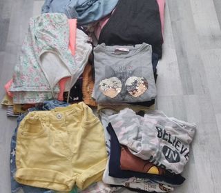 Vêtements de bébé (body, chaussettes, pantalons, tee-shirt, pyjamas...) d'occasion. Certains sont mixtes, d'autres pour filles. Taille des habits, ça va de 1 mois à 24 mois. 1€ pa
