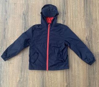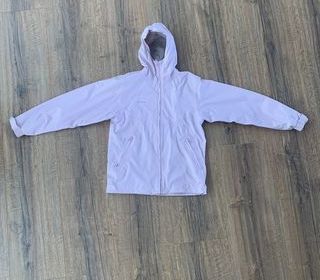 Veste imper-coupe vent à capuche, taille 8 ans Vynil Fraise, fermée par zip et pressions, doublée coton, une poche fermée par rabat et pression de chaque côté, une petite poche fer