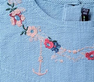 Robe d'été super pratique. Petites manches. Fond blanc et rayures bleues. Excellent état. On peut la ceinturer ou pas. Elle n'est pas doublée. En coton 100 % Idéale pour l'été. ta