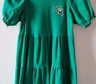 Robe jersey. manches courtes. verte. un petit logo sur le devant. Deux volants. Elle n'est pas très courte. Très pratique. et en super état Taille 8 ans