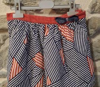 Jupe 8 ans très bon état ohlala. rouge bleu marine. fermeture zippée sur le côté. Ceinture intérieure ajustable