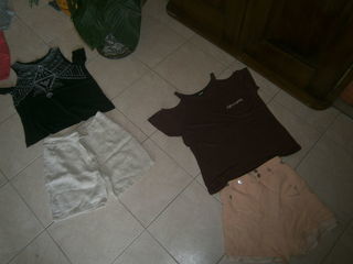 - un ensemble bermuda et T Shirt toile blanc - un short jean - nombreux hauts 2 euros pièce