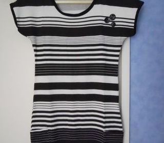 Tunique manches courtes, style marinière, marque originaire FPC. Taille 14 ans. 1 poche de chaque côté. Neuve. 96% viscose, 4% élasthanne. Lavage 30°, repassage léger. Visible à Re