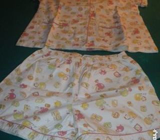 Pyjashort garçon Du pareil au même, marque originale, blanc à motif petit déjeuner (miel, theière, café, horloge) haut chemisette, bas short/caleçon, taille 8 ans. E