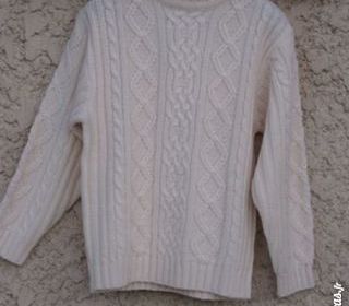 Vends <strong>très beau pull style irlandais blanc cassé</strong> <strong>avec torsades </strong>-30 % laine 70% acrylique- <strong>neuf jamais porté</strong> -marque CFK- taille 1