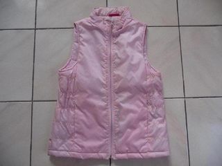 Doudoune matelassée rose clair, sans manche, fermée par glissière, 2 poches fermées par glissière. Lavable machine à 30°. 100 % polyester. Taille 10-12 ans. Longueur : 56 cm. Large
