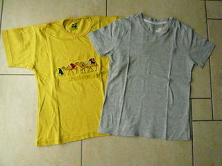 Lot de 2 tee-shirts manches courtes : - Un tee-shirt jaune Jerba Tunisie à motif brodé. - Un tee-shirt gris. Très bon état. N'hésitez pas à regarder mes autres annonces pour ré