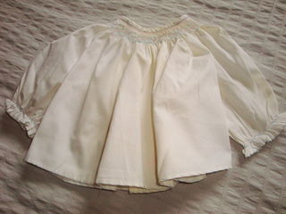 Chemisier blanc brodé à l'encolure manches longues hauteur 21 cm en très bon état Nous contacter par tél ou par mail Possibilité d'envoi