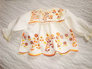 Tunique blanche avec motifs orangés manches longues 3 mois en très bon état Nous contacter par tél ou par mail Possibilité d'envoi
